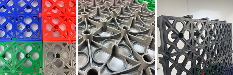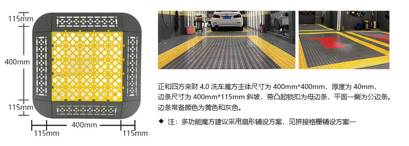 1. 分為3.4.5.厚度,解決不同厚度,統(tǒng)一紋路的問題 2. 啞光平紋設計,防滑,美觀,易清潔 3. 選用高級原料,加入其他輔料,顏色亮麗,無異味,無污染 4. 顏色為紅黃藍綠黑灰六色,滿足客戶用色需求,搭配屬于自己的風格 5. 通扣鎖扣設計,容易鋪設且容易拆卸打理 6. 加強支撐,不容易出現壓壞壓斷現象,滿足大多數車輛施工的要求 7. 使用年限長,五年超長質保,使用無后顧之憂 8. 十字支撐,保證承載最大化的同時,且易排泥排水