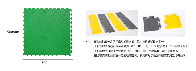 軟質(zhì)絕緣地板能夠?qū)⒚總獨立的地板快速拼裝成整體地面,專利型鎖扣結構連接能力更強,可承受叉車的來回碾壓。施工過程中無需膠